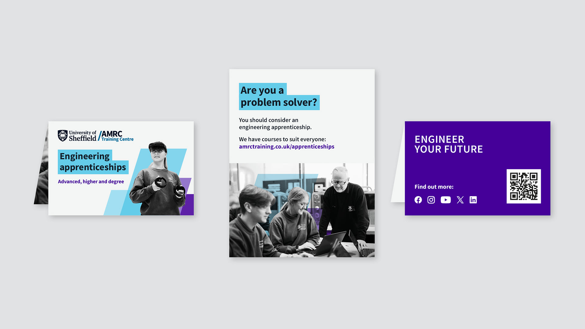 The AMRC Training Centre, part of the University of Sheffield's Advanced Manufacturing Research Centre, provides qualifications from advanced apprenticeship to postgraduate level. It combines the resources of a top Russell Group university with placements at leading industry partners, in a vocational "earn as you learn" approach.Following an organisation-wide rebrand, there was a desire for something fresh – an upgrade on the previous campaign design.