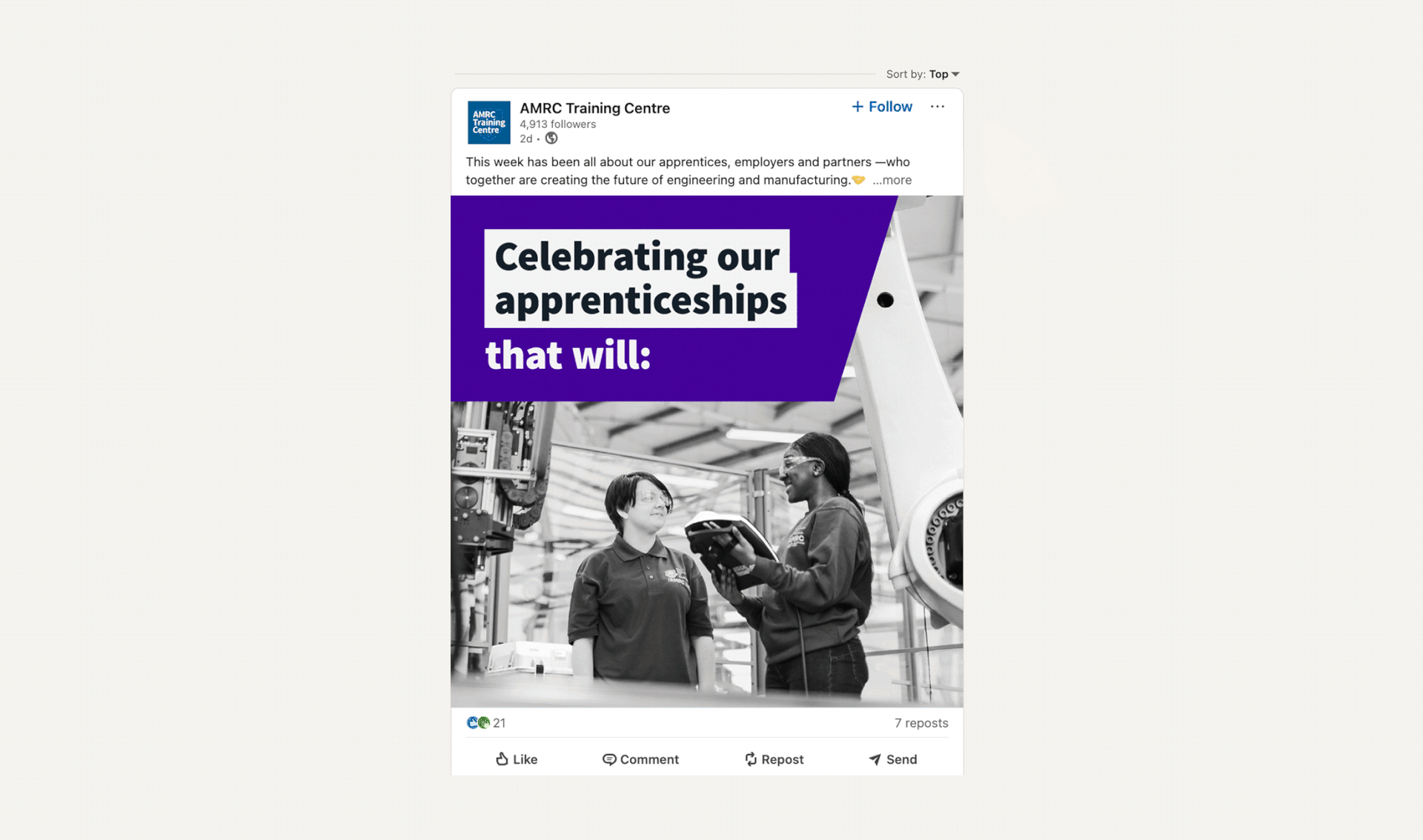 Imagery was chosen to reflect a diverse and youthful audience, actively engaged in the AMRC's advanced engineering facilities.